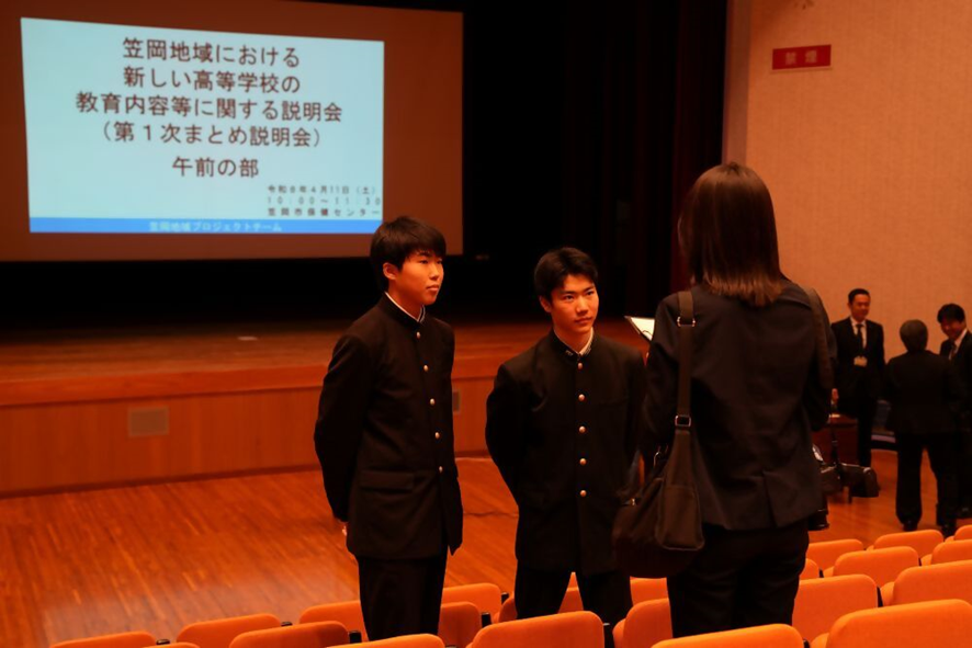 会場には企業や教育関係者など約30名が集まり、本校からは生徒会長の山河君と副会長の宮本君が出席しました。岡山県教育委員会による説明に対し活発な質疑応答が行われる中、山河君は「新しい高校の入試制度はどのようになるのか」と積極的に質問を投げかけました。