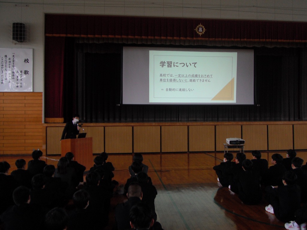進路課長からは、進路に関して「待っているだけではなく、自分事として自ら行動しよう」という話をされました。